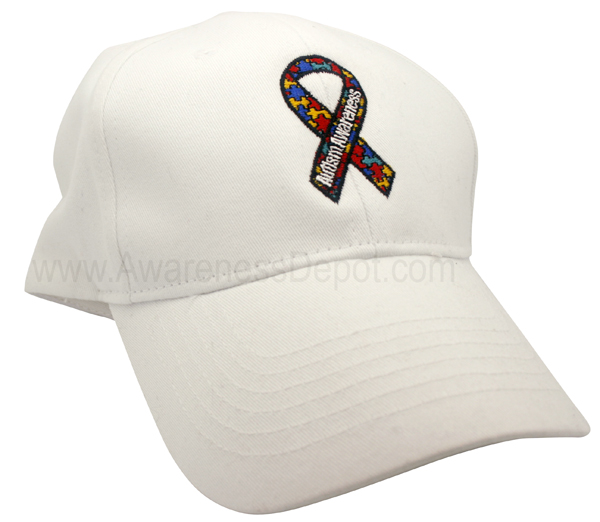 This durable cap looks lovely with the colorful autism awareness logo. It is embroidered (not patched) and has a great adjustable clip in the back. Embroidered logo is 2 1/4".