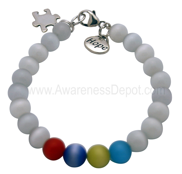 Autism Cat Eye Beads Sterling Silver Bracelet 2: Made with 8mm Cats eye round beads (fiber optic). The charms, spacers, clasp, jump ring and even the wire is .925 sterling silver. Our in stock bracelet measures 7 1/2 inch (standard size). Custom bracelets sizes are available 6" to 7 3/4". Just put your desire bracelet size in the comment section. Kindly allow 7 days for custom size bracelets.