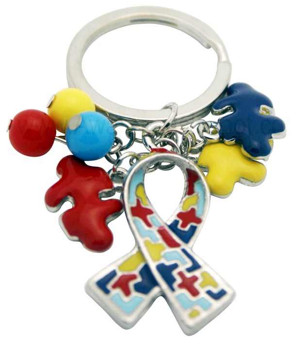 Autism Enamel Key Tag with charms and puzzle pieces. Each autism key tag is individually poly bagged. Measures 2.5" x1.5".